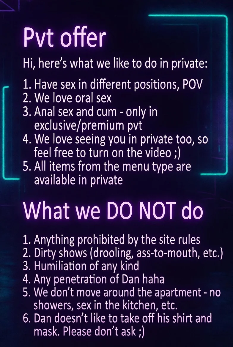 Alat Permainan Dubur, Ahegao, Lancap Menggunakan Tangan, Menayang Badan, Melancap, Jilat Pepek, Alat Permainan Seks, Duduk Atas Muka, Fetisy Kaki, Peragaan Busana, Kulum, Nilon, Penilaian Zakar, Sembang Lucah, Dildo atau Penggetar, Tegar, Posisi 69, Gaya Anjing, Seks Tetek, Gaya Berkuda, Separuh Bogel, Melancap dengan kaki, Free toy control, Dua Serentak, Pancut Dalam, Orgasma, Pancutan, Telan, Pancutan Mani